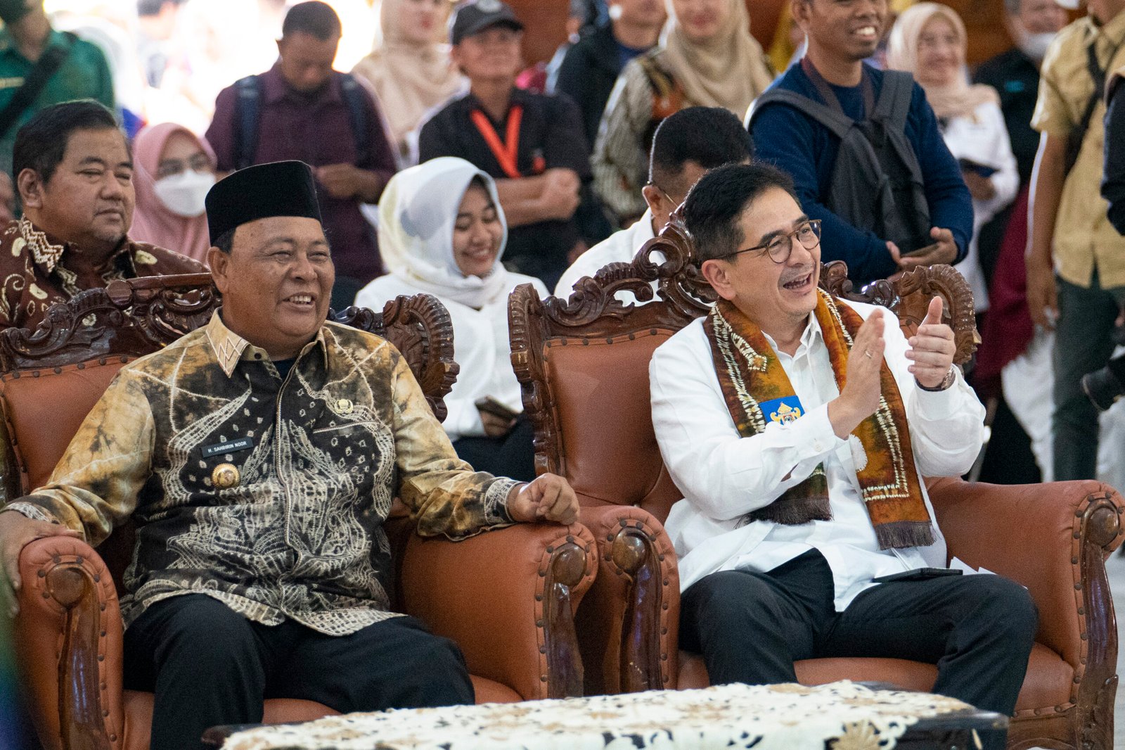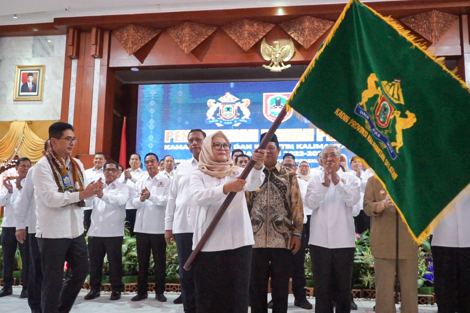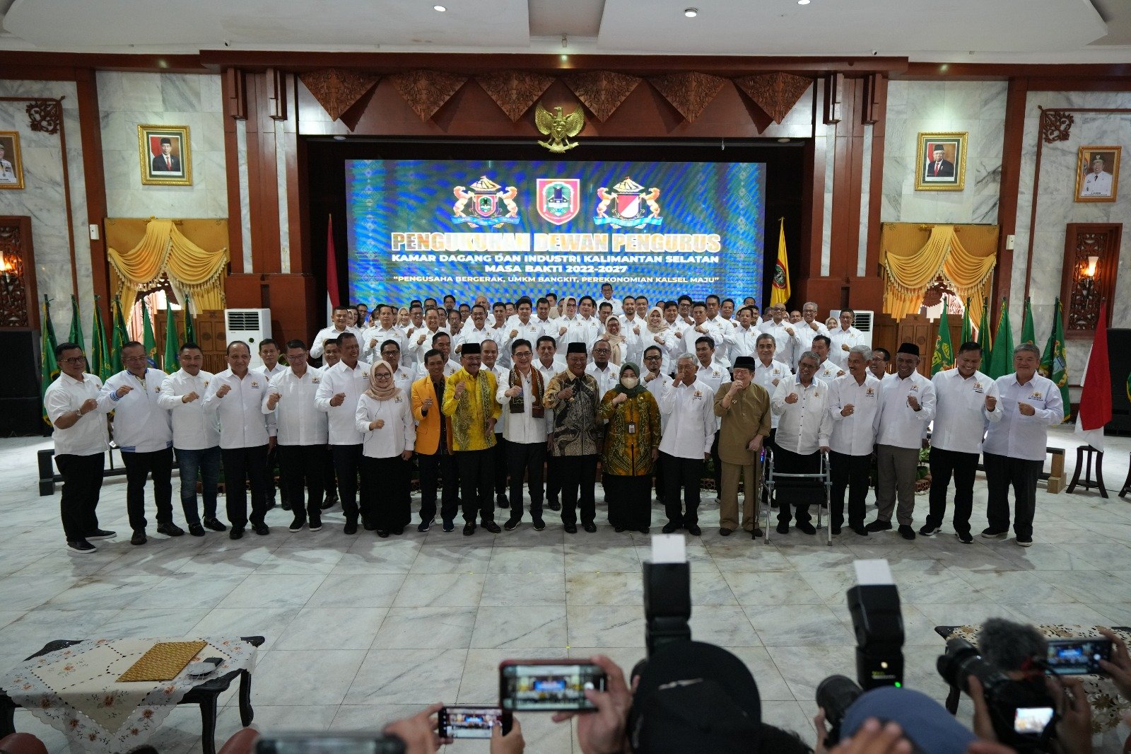 Ketua Umum Kadin Indonesia, Arsjad Rasjid mengukuhkan Ketua Kadin Kalsel Shinta Laksmi Dewi beserta pengurus Kadin Kalsel periode 2022-2027 di Mahligai Pancasila, Banjarmasin, Kamis (30/03/2023). Setelah melakukan pengukuhan, Ketua Umum Kadin Indonesia beserta jajaran Kadin Kalsel melanjutkan acara kuliah umum di ULM Banjarmasin.